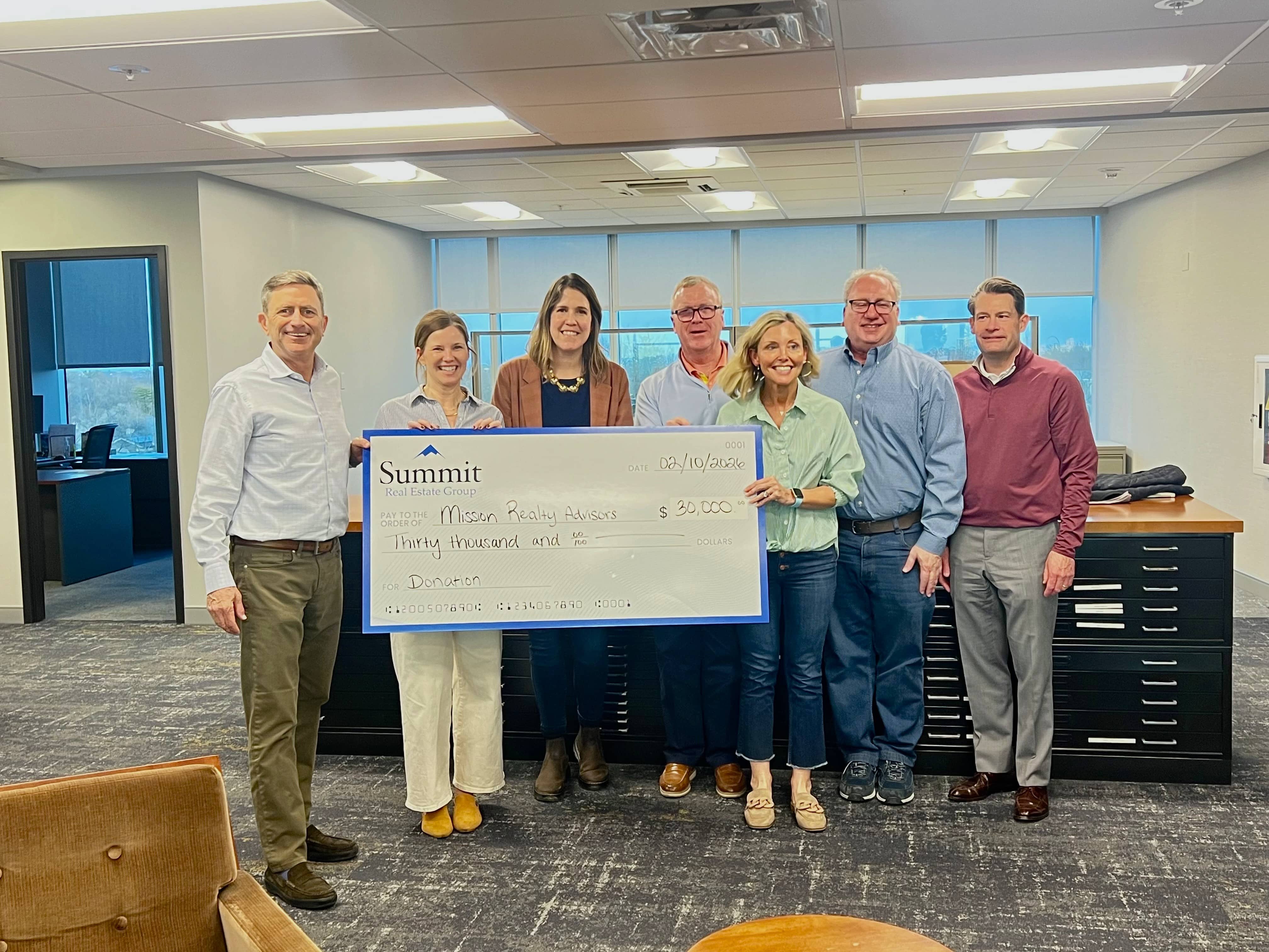 As part of its 30th anniversary celebration, Summit Real Estate Group announced a $30,000 donation to Mission Realty Advisors, a nonprofit founded by Summit and dedicated to creating meaningful community impact through real estate-driven solutions.