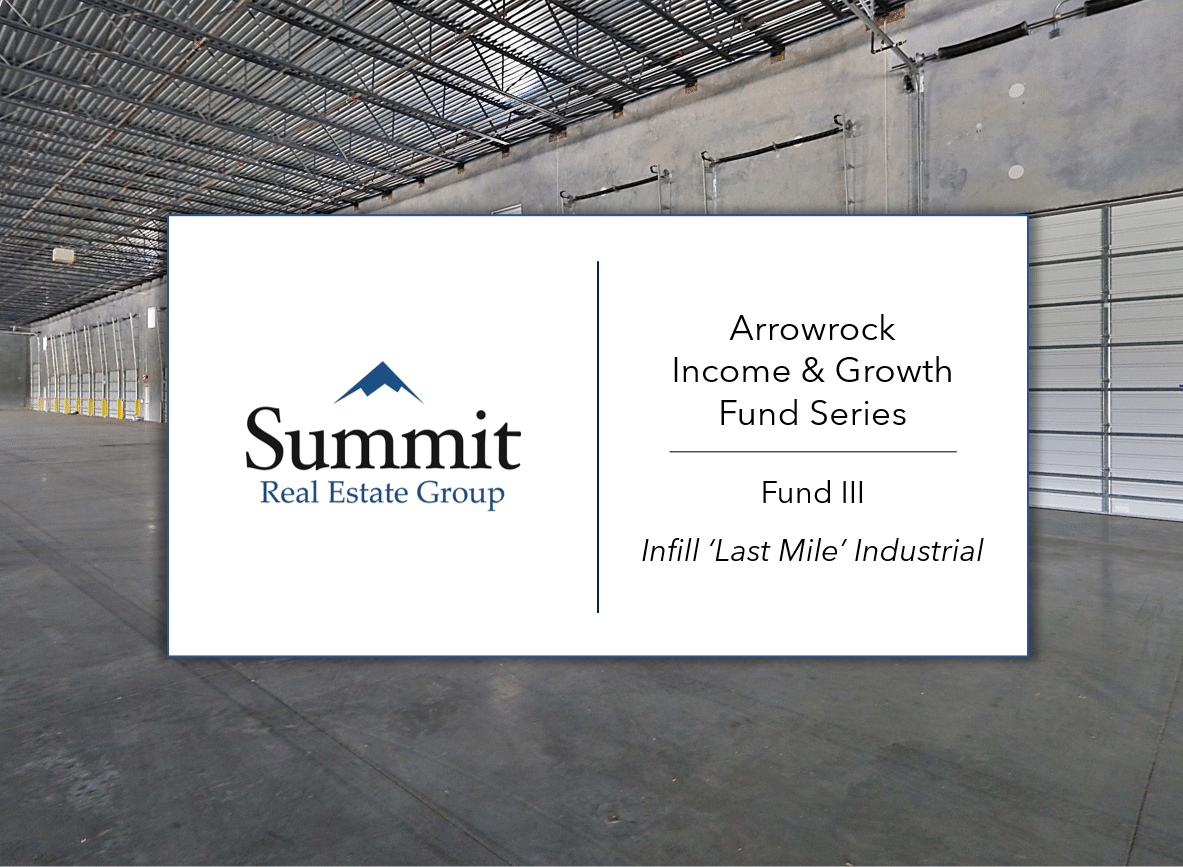 The Fund’s investment strategy is to acquire and selectively develop infill, ‘last mile’ multi-tenant warehouse / distribution buildings, typically between $5 million to $40 million per asset, in high-growth markets across the United States Sun Belt. At the time of closing, the Fund had deployed approximately $53 million of equity across seven assets representing nearly 1.6 million square feet. Further, the Fund has one project under contract and another with agreed to terms that together represent an additional $21 million of equity. Given a robust acquisition and development pipeline, Summit anticipates Arrowrock Income & Growth Fund III, LP to be fully deployed by March 2022.